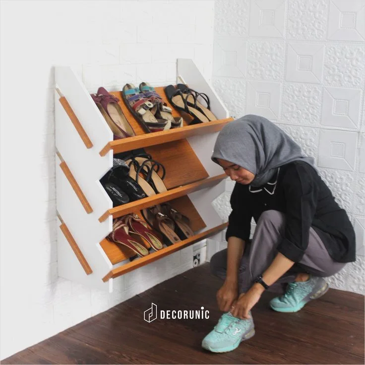 Image رتّب صباطك ووفّر المساحة فدارك 👟✨ منظم أحذية جداري خشبي بتصميم عصري، كيتعلّق فالحائط وكيخلّصك من الفوضى. متين وسهل التركيب، كيشد عدة أزواج ديال الأحذية.